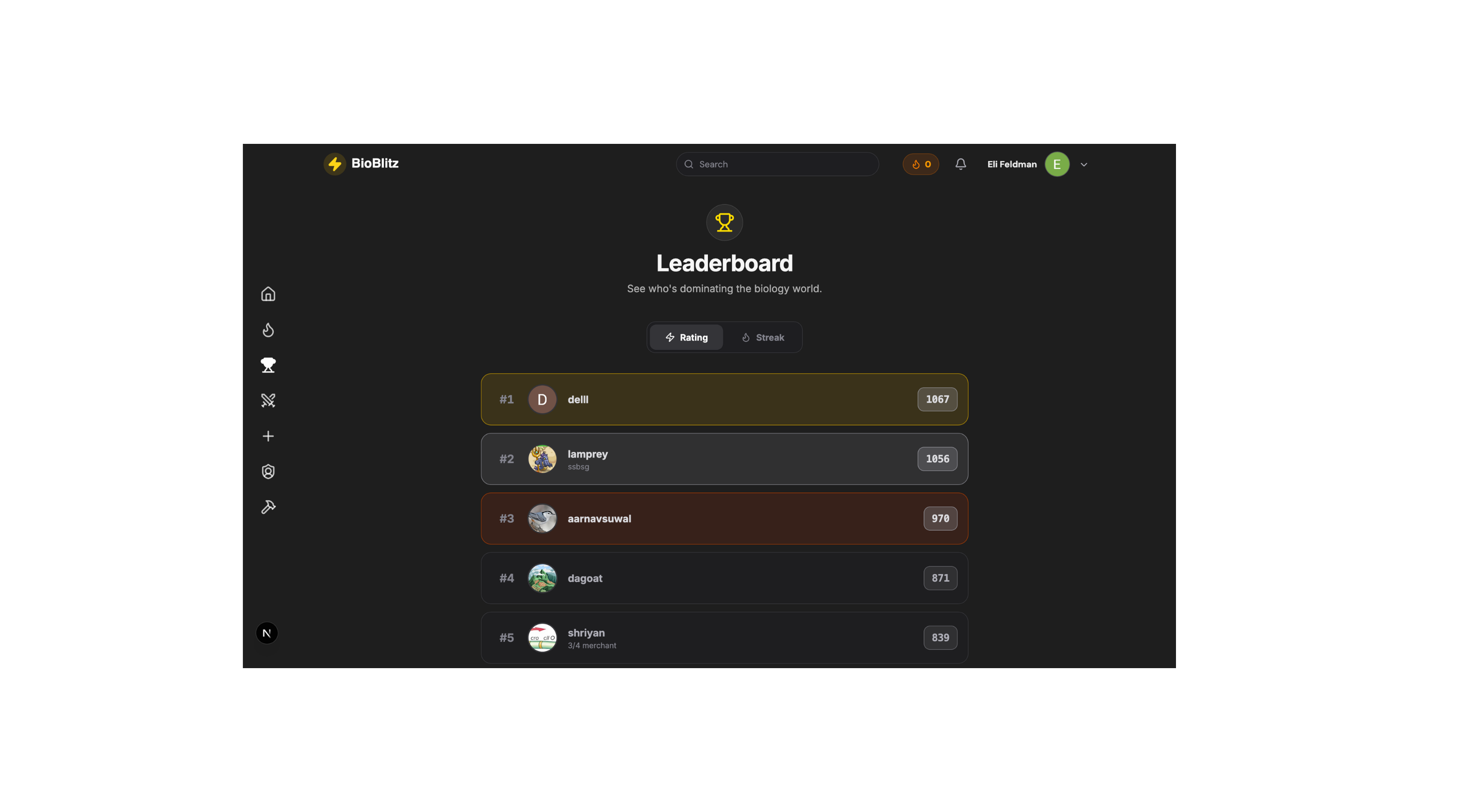 Everyone starts at 500 rating. Based on your performance on the blitzes, your rating will either go up or down. You can see how you stack up against your competitors on the leaderboard.